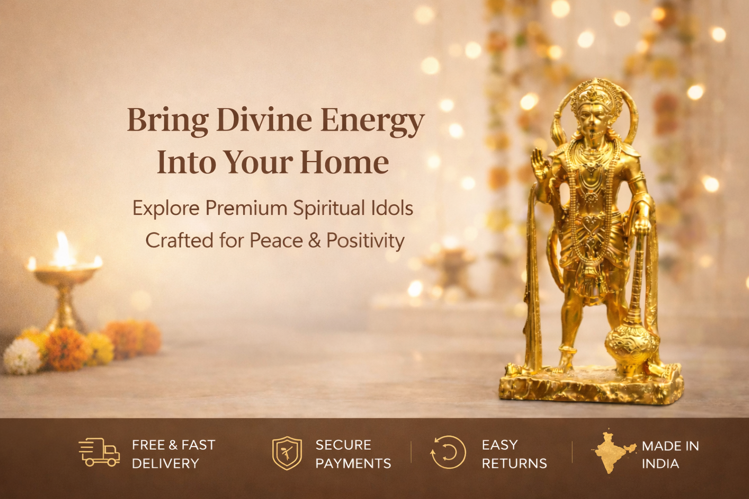 Lord Hanuman Ji Car Dashboard Idol – Antique Gold Finish